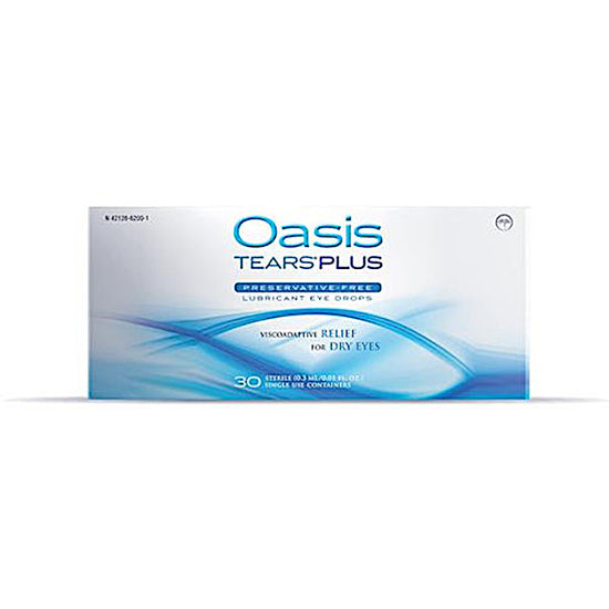 Oasis TEARS PLUS Preservative Free Lubricant Eye Drops lubricate, moisten, and relieve symptoms of dry eye disease. Symptoms can range from irritation, dryness, burning, gritty (foreign body sensation), and may have other underlying causes