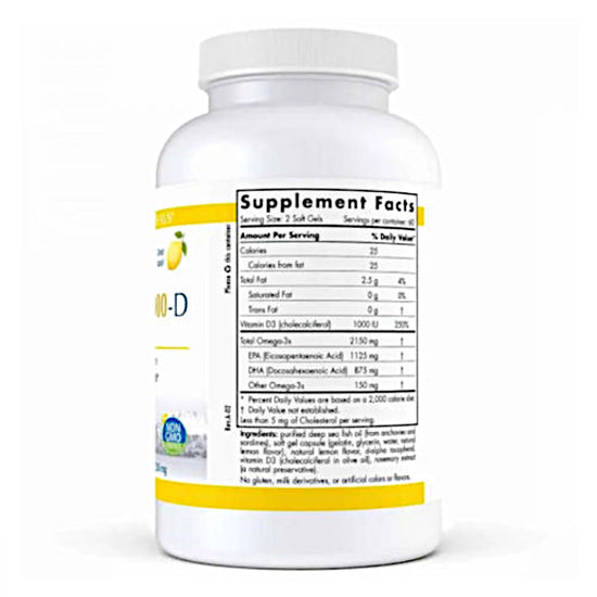 ProOmega®-D provides exceptionally high levels of the omega-3 essential fatty acids EPA and DHA, in addition to 1000 I.U. of vitamin D3, in one delicious serving. Vitamin D3 (or cholecalciferol) is the natural form of vitamin D produced by the body, and is better absorbed and utilized than other forms.